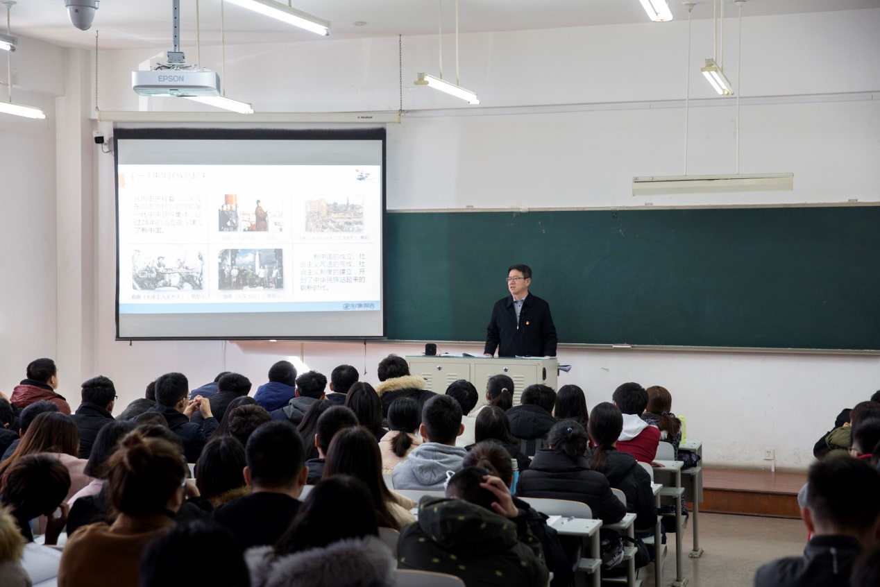 3月9日上午,校长姚杰走进课堂,以“全面认识新时代历史征程”为题,为我校海洋科技与环境学院2016级100多名本科生讲授形势与政策课。