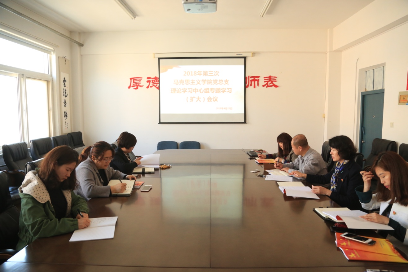 4月25日,tyc122cc太阳成集团在会议室召开2018年第三次党总支理论学习中心组学习(扩大)会议。学院理论中心组成员及党支部书记参加会议。会议由学院党总支书记王丹主持。