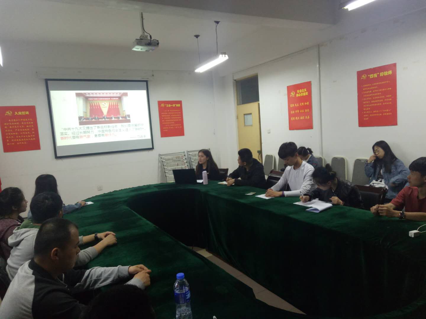 为深入学习贯彻习近平总书记在北京大学师生座谈会上的重要讲话精神,2018年5月14日下午,tyc122cc太阳成集团第三党支部副书记,校“习近平新时代中国特色社会主义思想研究会”学生宣讲团成员李子玄在理学院会议室为入党积极分子及部分学生干部做了《新时代·新气象·新作为》的宣讲报告。