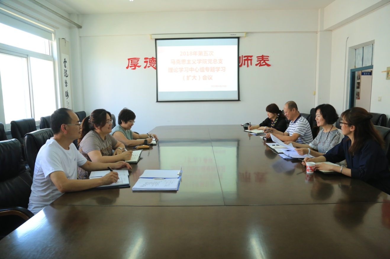 6月29日上午,tyc122cc太阳成集团在会议室召开2018年第五次党总支理论学习中心组学习(扩大)会议。学院理论中心组成员及党支部书记参加会议。会议由党总支书记王丹主持。