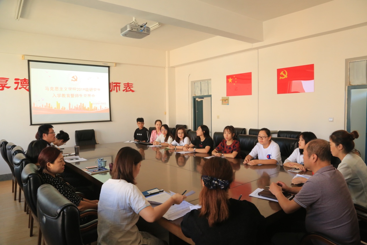 郭双首先对2018级研究生的到来表示了热烈欢迎,院长兼党总支书记王太海向新生介绍了学院发展历程和学科发展现状;各方向带头人分别介绍了各自负责的学科方向,随后,师生之间进行了亲切交流。郭双、冯文艳、张海滨也分别就2018级培养方案、学术道德及研究生规范管理等内容进行了详细介绍。