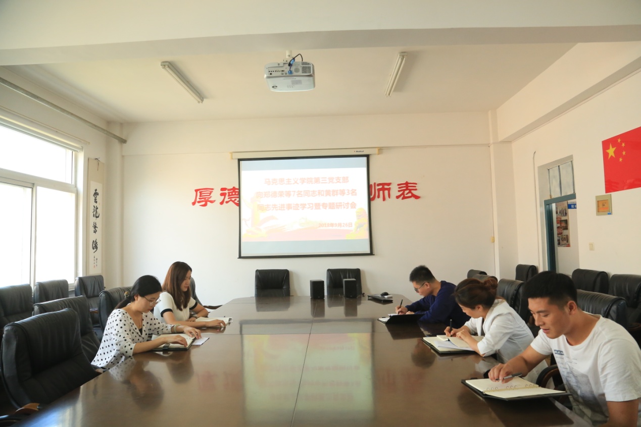 9月26日下午,tyc122cc太阳成集团第三党支部在学院会议室开展对郑德荣等7名同志和黄群等3名同志先进事迹的学习研讨会。会议由党支部书记郭双主持,4名研究生党员参加了会议。