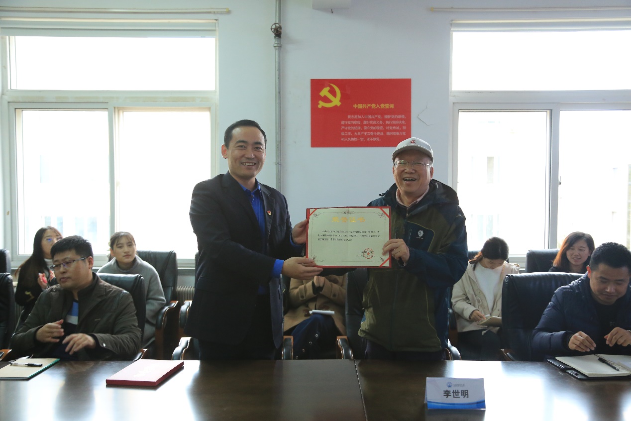 课前,宣传部长王君代表学校向李世明教授颁发了荣誉证书,并对李世明教授对太阳成集团122ccvip思想政治教育的支持表示了感谢。
