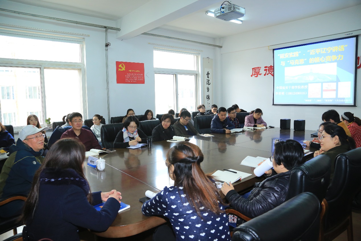 李教授的语言深入浅出,在座的全体师生又重温了延安精神,对习近平总书记在东北的重要讲话又有了更加深刻的认识,大家纷纷表示要继续深入学习贯彻习近平总书记讲话精神,为辽宁振兴做出自己的贡献。