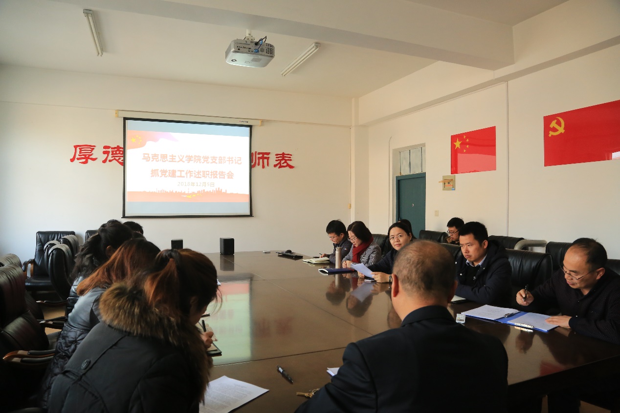 贯彻落实习近平新时代中国特色社会主义思想和党的十九大精神,加强基层组织建设,全面提高基层党建工作质量,按照校党委工作部署,12月5日,我院在党员活动室召开了2018年度支部书记抓党建工作述职评议会。学院总支委员、领导班子成员、支部书记、支部委员、教研室主任、学生党员代表出席了会议,会议由院长(兼总支书记)王太海主持。