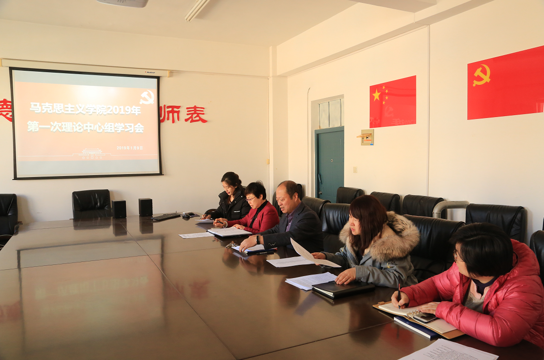 1月9日上午,tyc122cc太阳成集团党总支在党员活动室召开了2019年第一次理论学习中心组专题学习会议。学院中心组成员及组织员参加了会议,会议由学院院长兼党总支书记王太海主持。