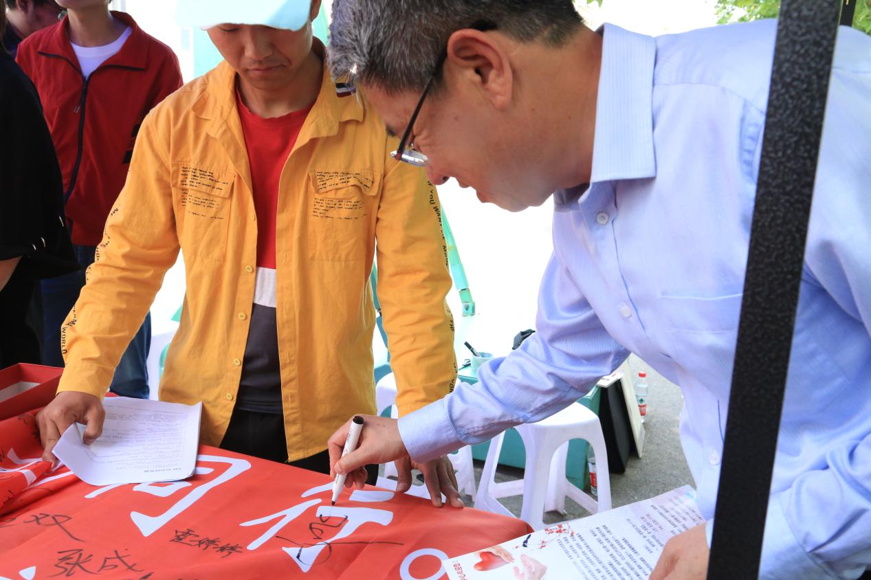 黄海校区的活动也吸引了校党委书记姚杰,他详细了解了本次活动的开展情况,对本次活动组织形式给予了高度赞赏,并参加了条幅签字活动。