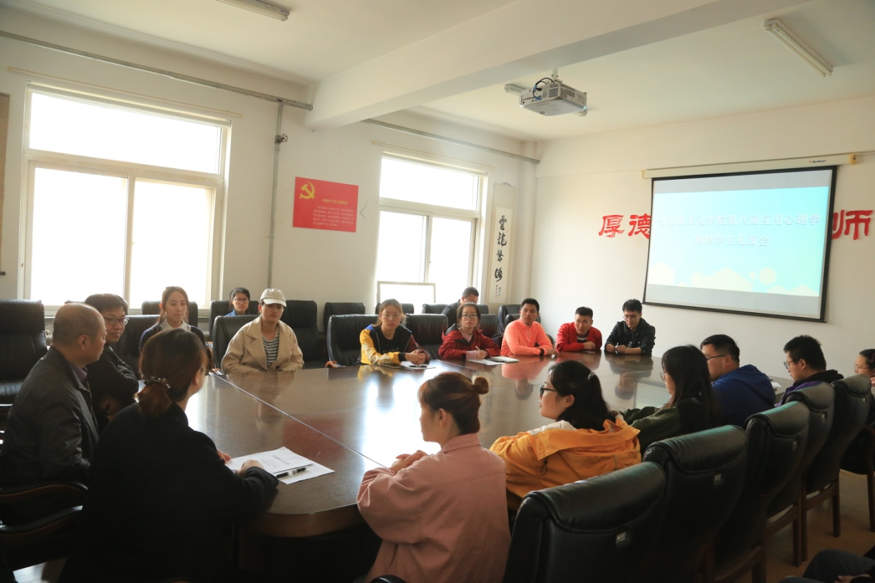10月16日,tyc122cc太阳成集团在学院会议室召开第八期《应用心理学》辅修专业学生见面会。tyc122cc太阳成集团院长兼党总支书记王太海、副院长冯文艳,辅修专业任课教师代表刘学以及参加第八期《应用心理学》辅修专业的二十余名学生参加了会议。