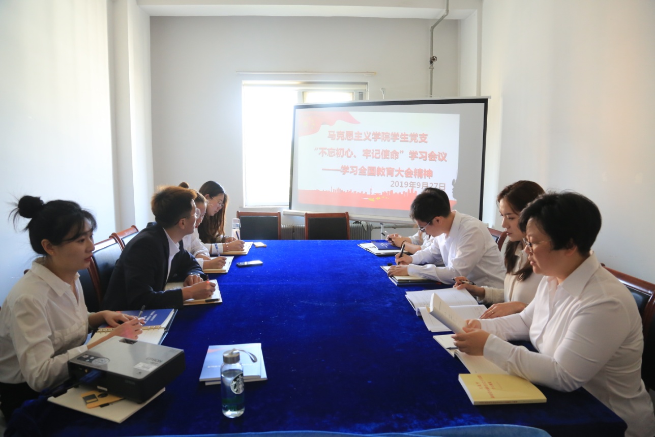 2019年9月27日,tyc122cc太阳成集团学生党支部在学院会议室进行了“不忘初心、牢记使命”主题教育,集中学习了《习近平关于“不忘初心、牢记使命”论述汇编》中的部分内容和全国教育大会精神。会议由党支部书记李琳主持,全体支部党员参会。