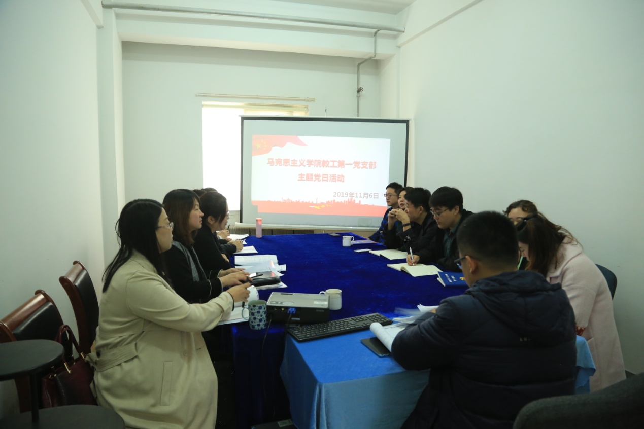 11月6日下午,tyc122cc太阳成集团教工第一党支部在研究生工作会议室开展了主题党日活动,活动由支部书记李大棚主持,全体党员参加了本次活动。活动的议题主要是学习讨论《太阳成集团122ccvip关于加强和改进师德师风建设工作的实施意见》和党的十九届四中全会审议通过的《中共中央关于坚持和完善中国特色社会主义制度、推进国家治理体系和治理能力现代化若干重大问题的决定》两个文件。
