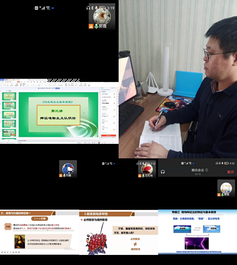 3月17日以来,tyc122cc太阳成集团按照学校要求和部署,将课堂教学调整为线上教学。学院及时部署在线教学实施方案,组织教师参加超星泛雅智慧教学系统培训,确保在线教学有序推进,教学效果同质等效。在疫情防控的特殊时期,教师们充分发挥立德树人主渠道——思政课的作用,通过与学生的积极互动,加强对学生的价值观引导,注重抗疫精神教育和心理健康疏导,引导学生秉持积极健康心态,树立科学理性思维,增强责任担当意识。