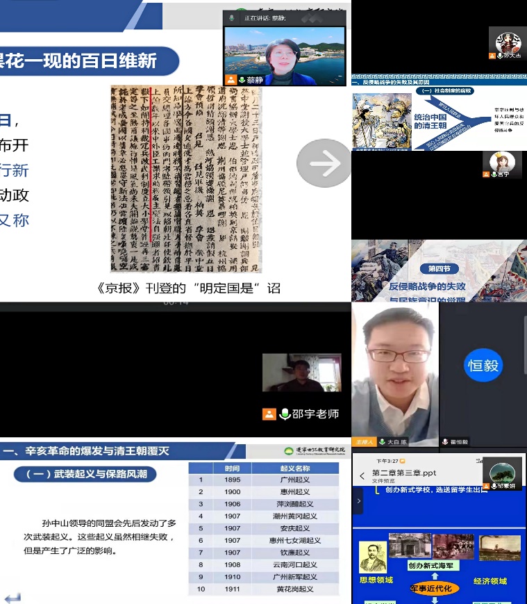 在“中国近现代史纲要”课程讲授中,蔡静老师通过推荐阅读、小组汇报、微视频拍摄、公众号延伸等多种手段讲述中国近现代落后挨打而又抗争觉醒的苦难辉煌历程;她结合冬奥会等时事热点,开展“竞争,团结,一起向未来”、“点点萤火,汇成传承星河”、“奋斗,改革,走向富强”等“强国有我—英才说”系列活动,增强了师生有效互动,在培养英才学子大历史观的同时,也激发他们的爱国热情。李大棚老师用历史的思维将新中国成立以来党带领各族人民战胜鼠疫、霍乱、疟疾等疫情的历史与当前中国和世界抗击疫情的现实充分结合起来,通过历史与现实,国内与国外的对比,引发学生对共产党制度优势的思考。孙大志老师将近代中国人民在党的领导下为实现国家独立和民族解放而经受的苦难历程和抗击新冠肺炎疫情中党领导人民所展现出的“中国力量、中国速度、中国精神”进行对比,展现中国特色社会主义制度的优越性。邵宇老师通过抗疫事迹升华理论内涵,让学生们进一步了解中国特色社会主义制度的优越性,激发学生的爱国热情,增强学生对马克思主义中国化理论的学习兴趣。宫宁老师结合当前中国抗击疫情的做法,让学生认识到中华民族强大的凝聚力,社会主义制度的优越性。陈曦老师结合北京冬奥会和抗疫事例,讲授从中折射出的民族文化、民族精神,激发学生学习中国近现代史的兴趣,提升了学生的民族自信心和民族自豪感。