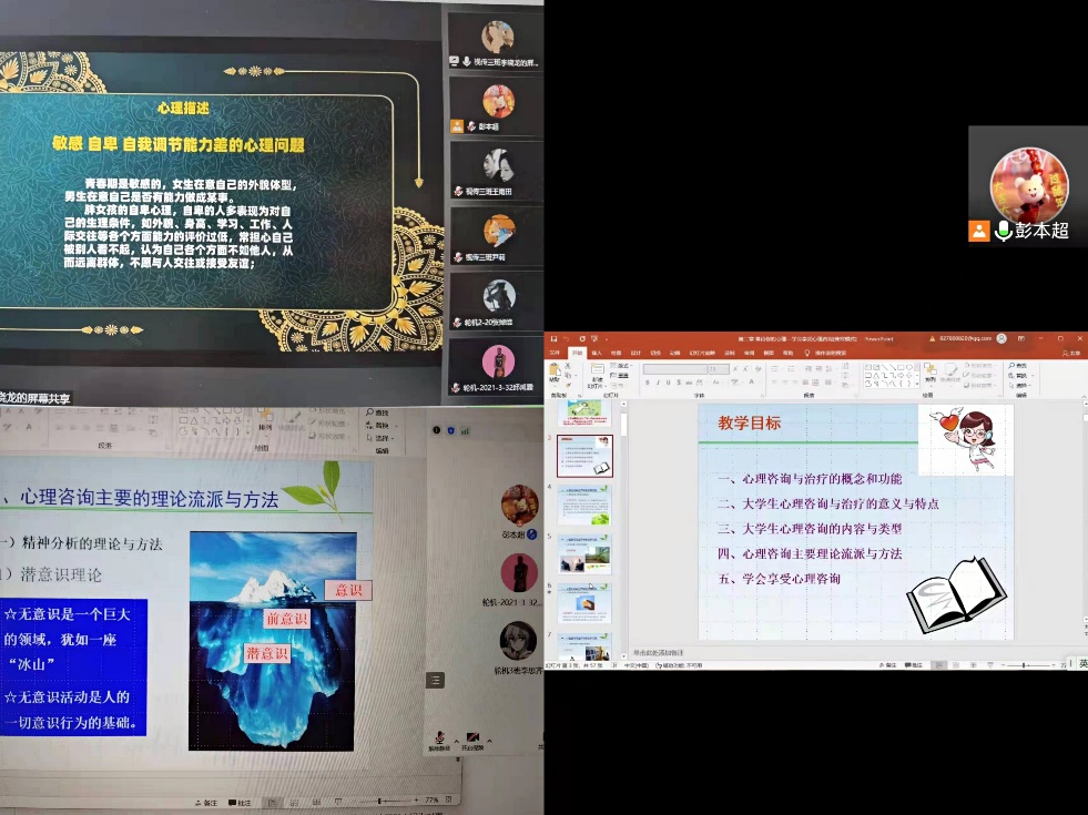 彭本超老师依托《大学生心理健康教育》课程内容积极开展疫情防控期间心理健康教育。他从良好的防疫心理状态从何处来入手,分析了疫情防控期间面临的压力以及可能产生的各种心理问题,结合鲜活生动的案例讲解调适心态、释放压力的方法,并开展在线答疑环节,学生热烈讨论,主动分享在应对压力时的经验和感受。通过课程进一步提升师生新冠肺炎疫情防范意识,帮助大家正确认识常见的心理反应,并结合自身实际做好情绪调适,科学缓解疫情防控期间产生的心理焦虑和压力,强化战胜疫情的信心和决心。