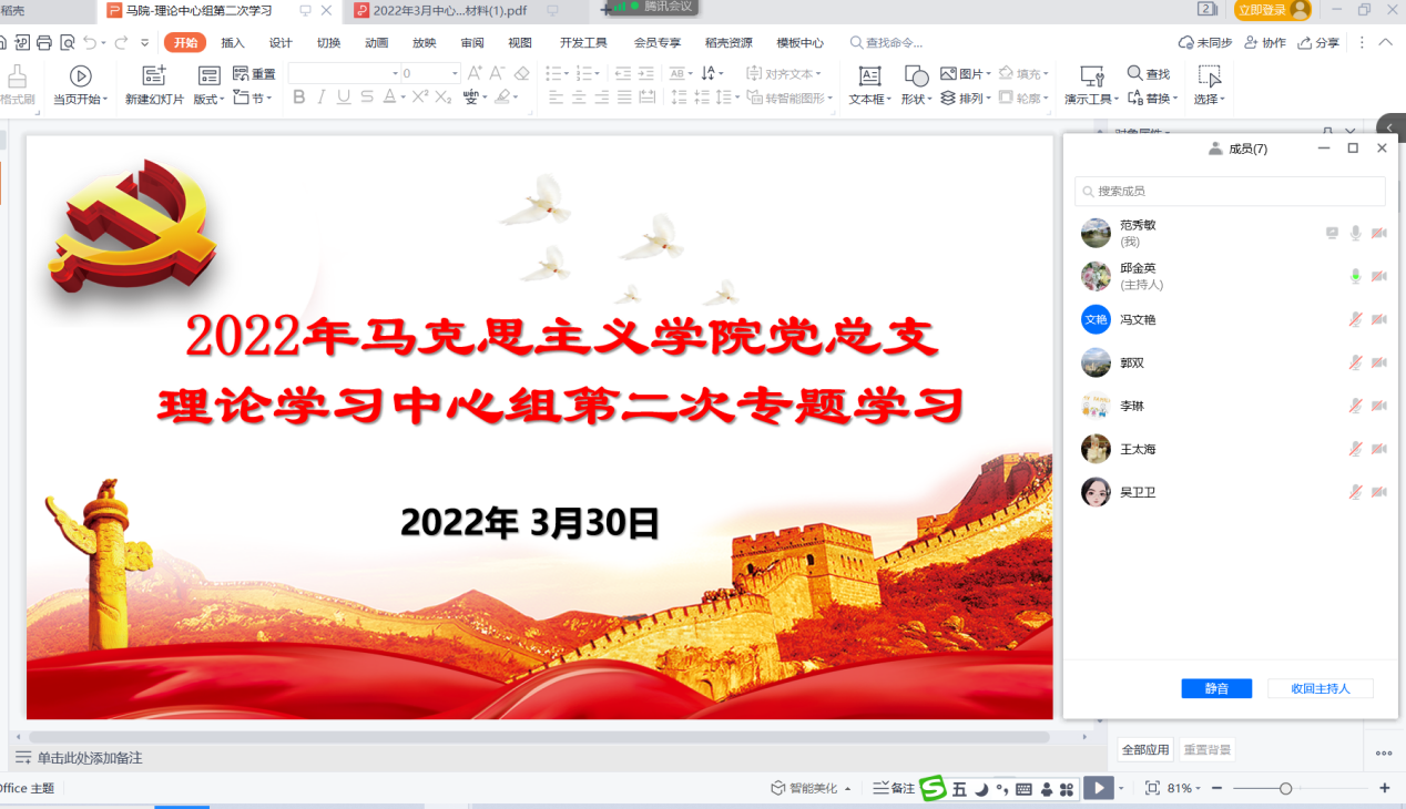 3月30日,tyc122cc太阳成集团党总支以腾讯会议形式召开了理论学习中心组专题学习会议,学院理论学习中心组成员参会。会议由学院党总支书记邱金英主持。