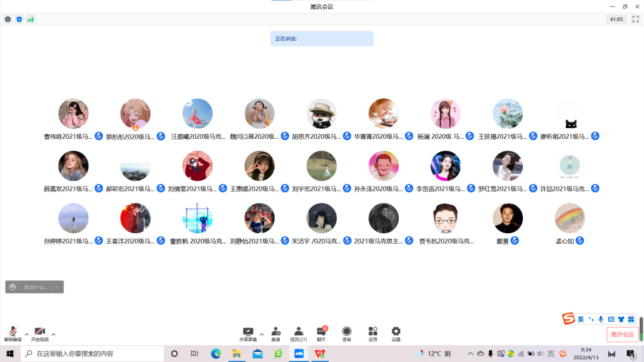 4月13日上午,tyc122cc太阳成集团文体部通过腾讯会议开展“红歌鉴赏活动”。本次活动由学生会副主席李茁语主持,2020级、2021级研究生参加。