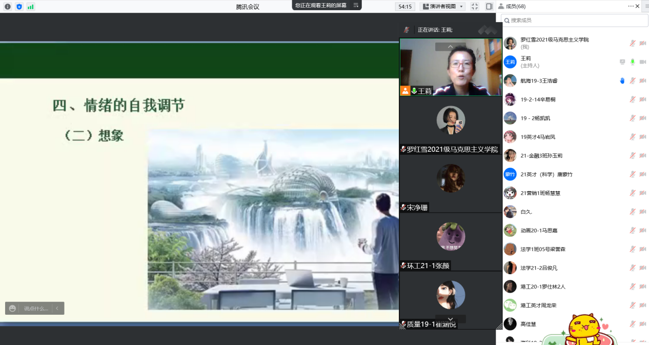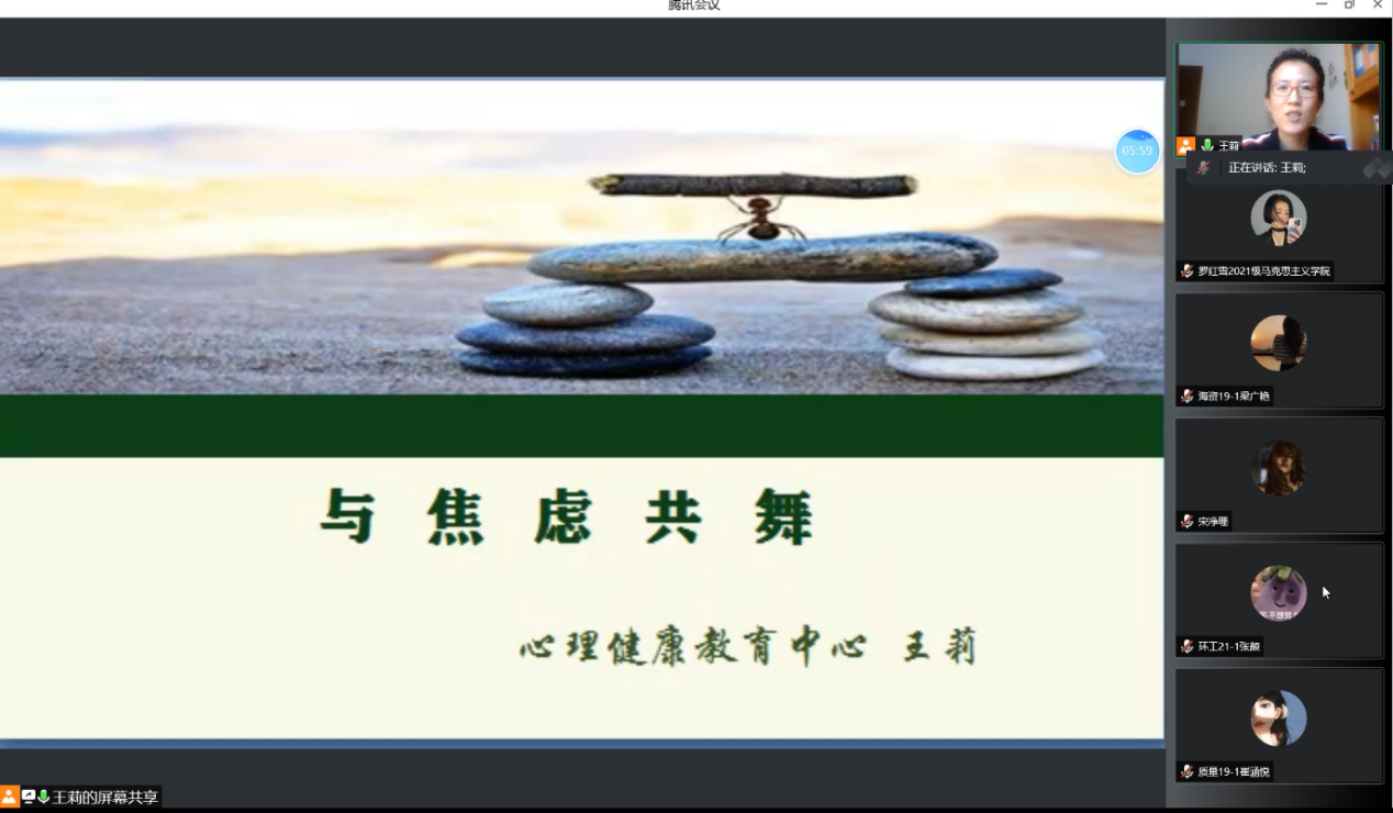 本次培训会的主题是《与焦虑共舞》。王莉先通过一组数据说明了疫情对民众心理的影响,接着通过理论与实际相结合的方法,深入浅出的从正确认识和评估自己的心理反应、负性情绪大小取决于认知评价、情绪的自我调节等三方面向心理委员提供了面对焦虑的方法。
