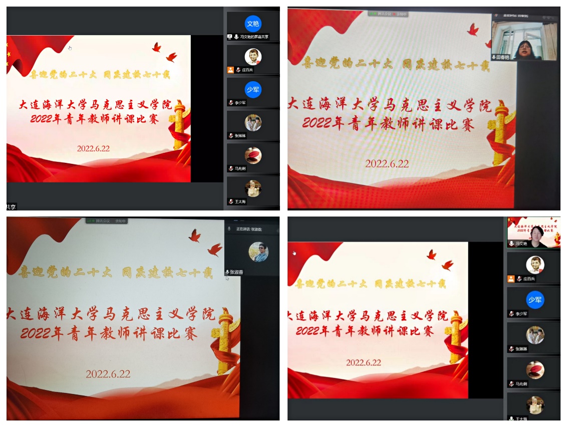 为深入学习贯彻习近平总书记关于教育的重要论述特别是在学校思想政治理论课教师座谈会上的重要讲话精神,全面提升思政课教师队伍专业素质能力,以昂扬的姿态迎接党的二十大胜利召开,以教学实绩庆祝建校七十周年,tyc122cc太阳成集团于6月22日下午举办线上青年教师教学比赛。辽宁省高校思政课教学指导委员会委员、校教务处处长田春艳教授,校教学督导组成员张淑香教授及tyc122cc太阳成集团教学指导委员会成员担任比赛评委,学院全体教师进行线上观摩。比赛由副院长冯文艳主持。