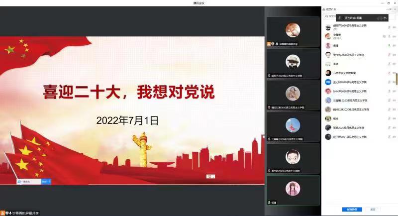 7月1日,tyc122cc太阳成集团研究生党支部通过腾讯会议线上召开了“迎七一·我想对党说·重温入党誓词”主题党日活动,支部全体党员参加。