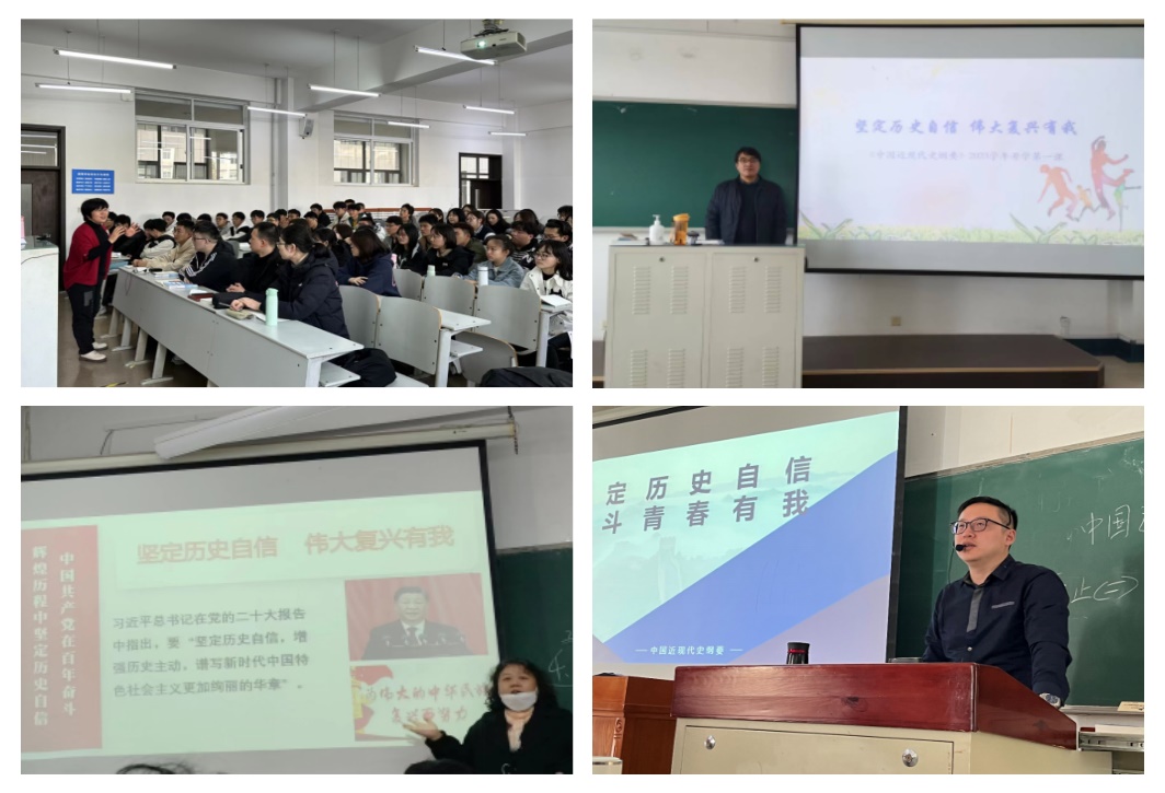 各课程组聚焦社会热点话题,直面学生思想困惑,结合各自课程特色进行开学第一堂思政课的内容设计。“中国近现代史纲要”课程突出“坚定历史自信,民族复兴有我”主题,“马克思主义基本原理”课程突出“坚定理论自信,做新时代中国化时代化马克思主义践行者”主题,通过现象解析和理论阐释为学生解疑释惑,注入思想正能量。