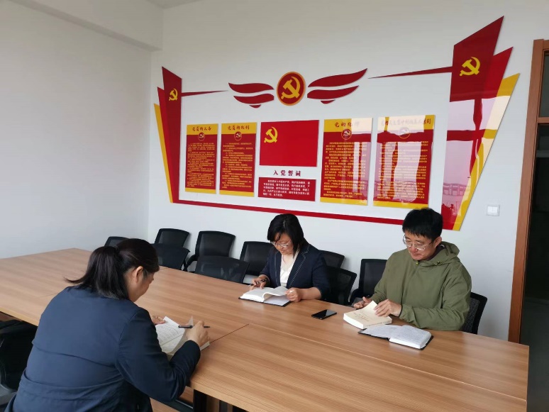 5月24日,研究生思想政治理论课教研室党支部在党员活动室开展学习贯彻习近平新时代中国特色社会主义思想主题教育理论学习活动,活动由党支部书记马兆俐主持,全体党员参加会议。