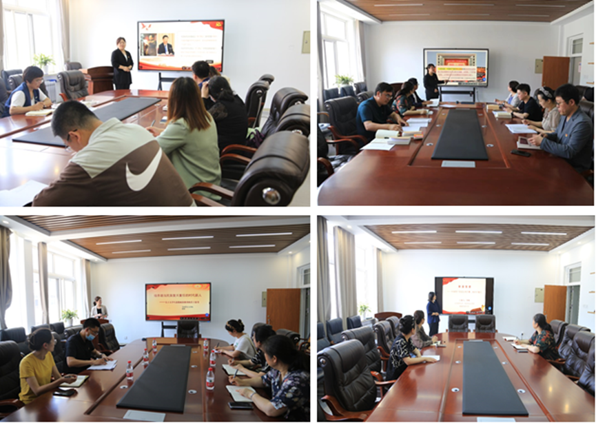 党总支副书记吴卫卫以“立足百年党史,牢记三个‘务必’,谱写新时代中国特色社会主义绚丽华章”为题,阐述了“三个务必”的发展历程、重大意义以及践行“三个务必”的路径与方式;副院长冯文艳以围绕“推进中国式现代化 开创高质量发展新局面”的主题,结合立足思政课教师身份定位推动思政课教学高质量发展做了讲授;副院长兼心理健康教育中心主任郭双以“培养堪当民族复兴重任的时代新人——关于大学生思想政治教育的若干思考”为题,围绕习近平总书记高度重视理论教育、高度重视三观教育、弘扬爱国主义以及青年大学生的特质四个方面,强调思想政治理论课教师要成为塑造学生品格、品行、品味的“大先生”,要完成培养堪当民族复兴重任的时代新人历史使命;副院长李琳以“重温党史——中国共产党创立的背景、特点及意义”为题,围绕中国共产党创建的背景条件及建党的伟大意义,阐释了党在创建之初的 “初心”和“使命”。
