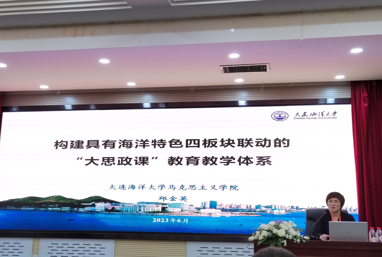在主题报告环节,来自全国22位专家学者聚焦“习近平新时代中国特色社会主义思想与大思政课建设”“农林院校特色思政课建设的理论与实践”“思政课建设的叙事与方法”三个主题,围绕习近平总书记关于“要注重启发式教育”“要讲好新时代中国故事”的重要论述,针对高等农林院校的学科性质和思政课课堂教学特点进行了大会发言。我校tyc122cc太阳成集团院长兼党总支书记邱金英以“构建具有海洋特色四板块联动的‘大思政课’教育教学体系”为题,就我校tyc122cc太阳成集团依托获批的“海洋强国教育融入思政课教学研究”思政课名师工作室,结合我校蓝色理念、蓝色学科开展的“一体两翼三维四板块”的海洋强国教育“大思政课”建设作大会主题发言。