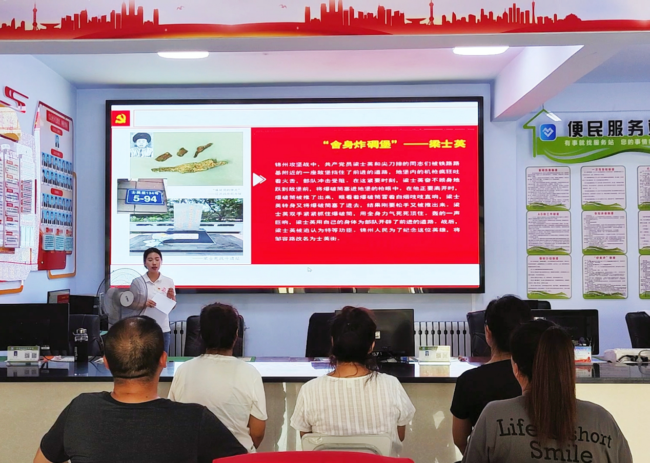 为了讲好红色故事,弘扬革命精神,用红色基因熔铸理想信念,让红色记忆激发使命担当,红色印迹社会实践小队将辽宁“六地”的红色文化实践成果带回了自己的家乡,深入社区进行宣讲。2023年7月27日下午,小队成员万羽墨在朝阳市北票宏岳社区进行了宣讲。