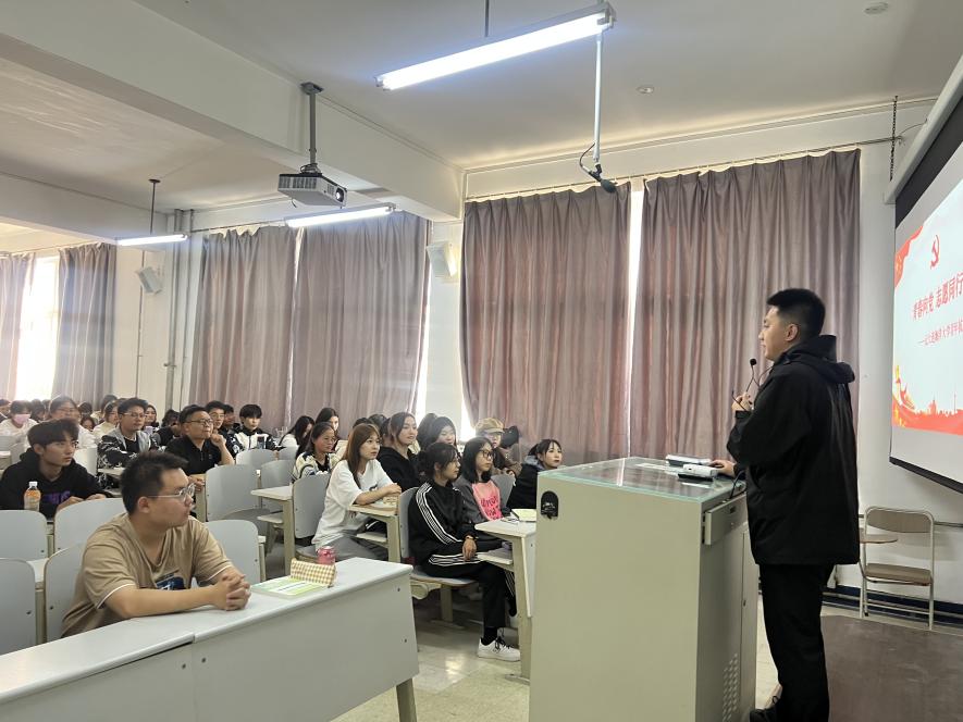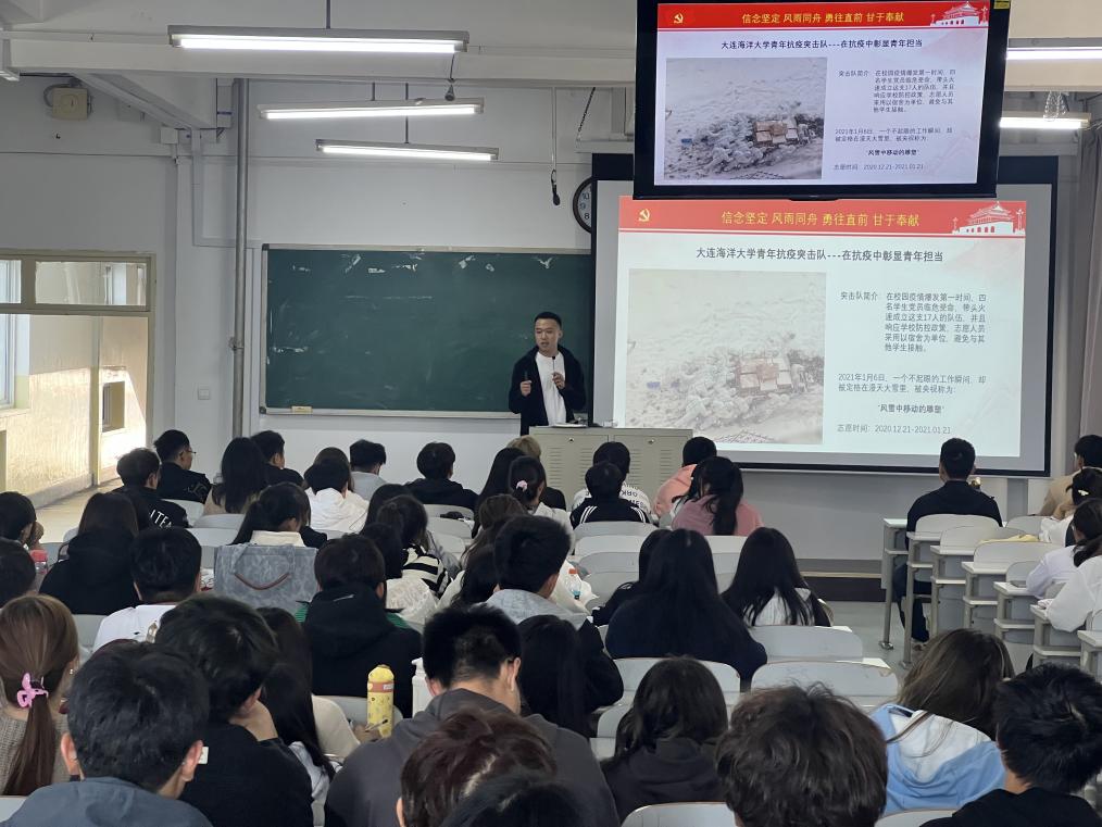 为深入学习宣传贯彻党的二十大精神,提升思政课教学实效性,10月23日,我校青年抗疫突击队队员,航海与船舶工程学院2022级研究生李潇阳、魏显赫同学受邀来到tyc122cc太阳成集团张琳琳老师主讲的《思想道德与法治》课堂,以《青春心向党,奋进新征程》为题,为2023级日语、英语和土木工程专业的同学们讲授了一堂别样的朋辈思政课。