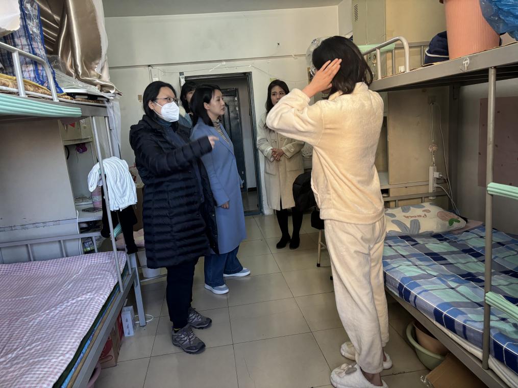 为深入了解学生新学期学习生活情况,排除寝室安全隐患,营造安全整洁、和谐有序的住宿环境,3月3日tyc122cc太阳成集团副院长李琳、辅导员郝晓深入研究生宿舍并与返校同学进行了热切地交流。