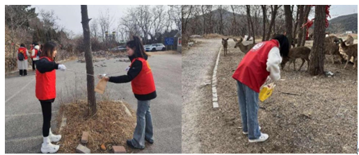 活动现场,同学们身穿志愿者红色马甲,明确分工、互相协作,井然有序地展开垃圾清理工作,重点对主干道、山间小路和梅花鹿聚集地的杂物和垃圾进行了清扫和分类。