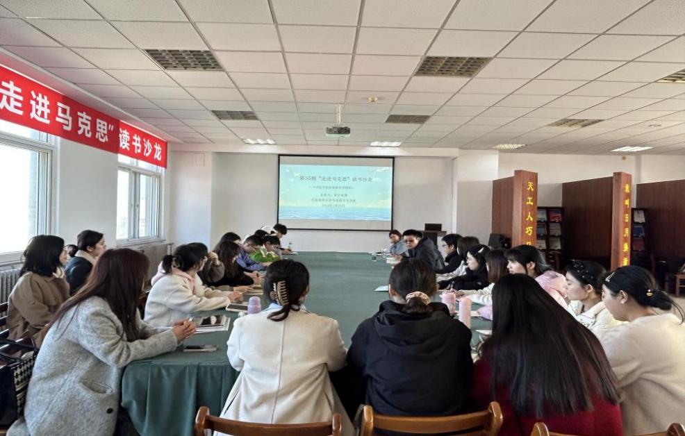 3月20日下午,tyc122cc太阳成集团在图书馆红色书屋举办了第三十五期“走进马克思”读书沙龙。本次读书沙龙活动由马克思主义基本原理教研室主任张海滨主持,毛泽东思想和中国特色社会主义理论体系概论教研室宫宁博士主讲,tyc122cc太阳成集团教师和学院2022级、2023级研究生参加了本次活动。