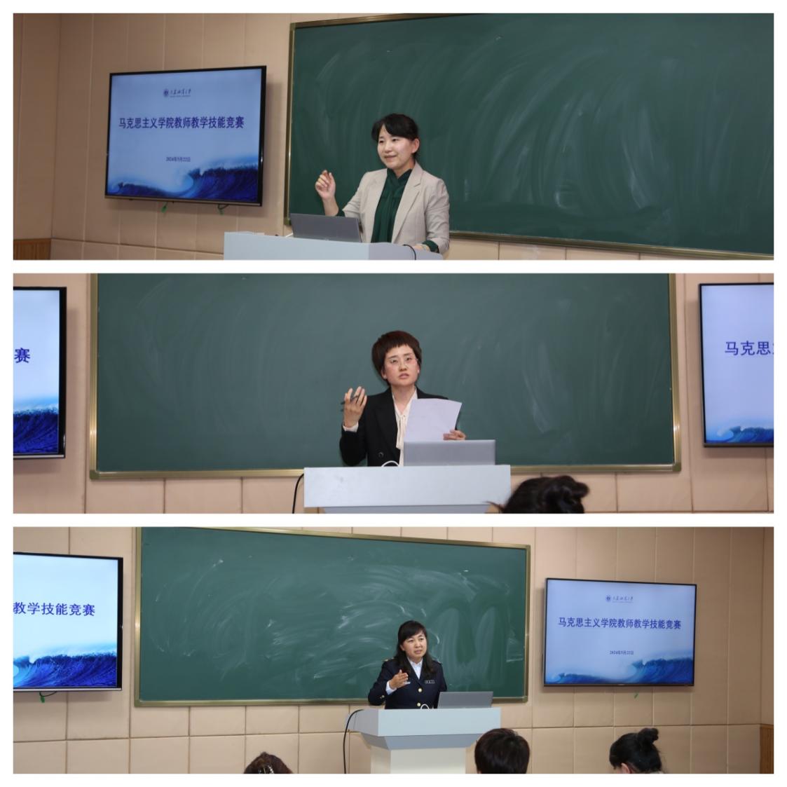 比赛环节,十位参赛教师依次登场,围绕本科生、研究生思想政治理论课课程内容进行15分钟的现场讲授。他们通过逻辑严密的内容设计、富有感染力的教学案例和启发式的教学方式展现出各自课程的教学特点,展示了学院教师的良好风貌。经过近三个小时的角逐和评委认真严格的评审,石丽萍荣获一等奖,王帅、张琳琳荣获二等奖,刘鑫、李萌、陈曦荣获三等奖。