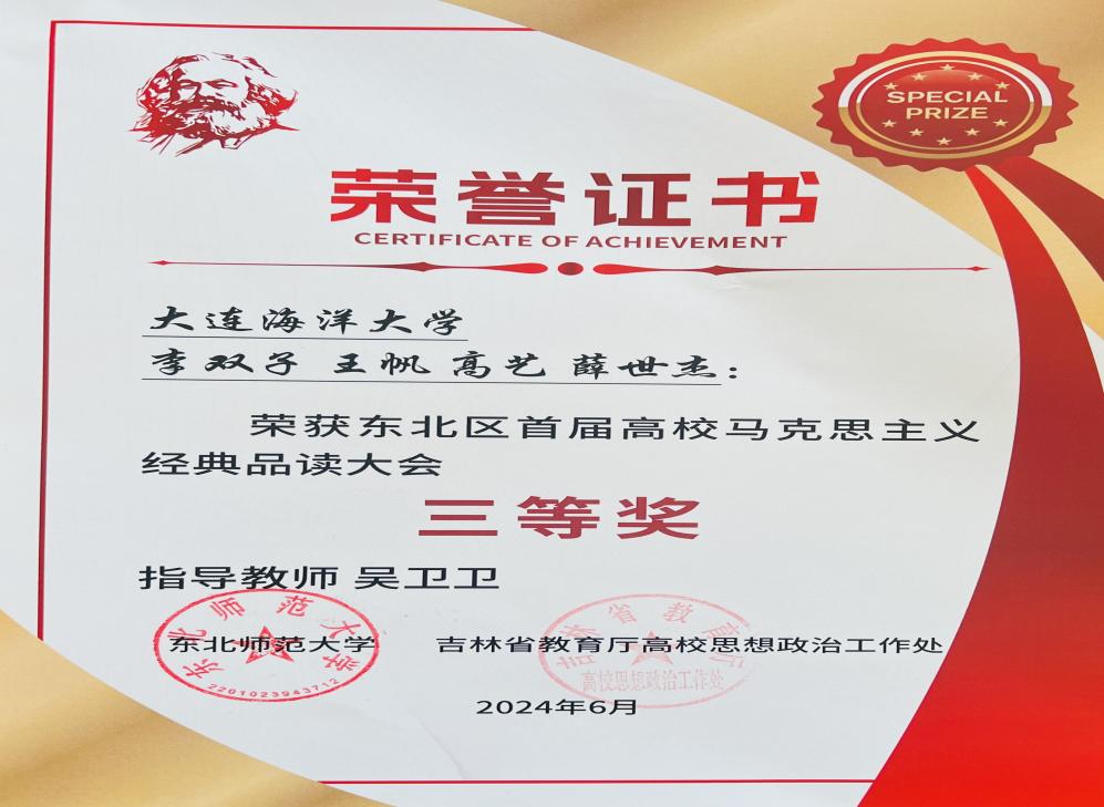 近日,东北区首届高校马克思主义经典品读大赛在东北师范大学举行。tyc122cc太阳成集团党总支副书记吴卫卫带队参赛。