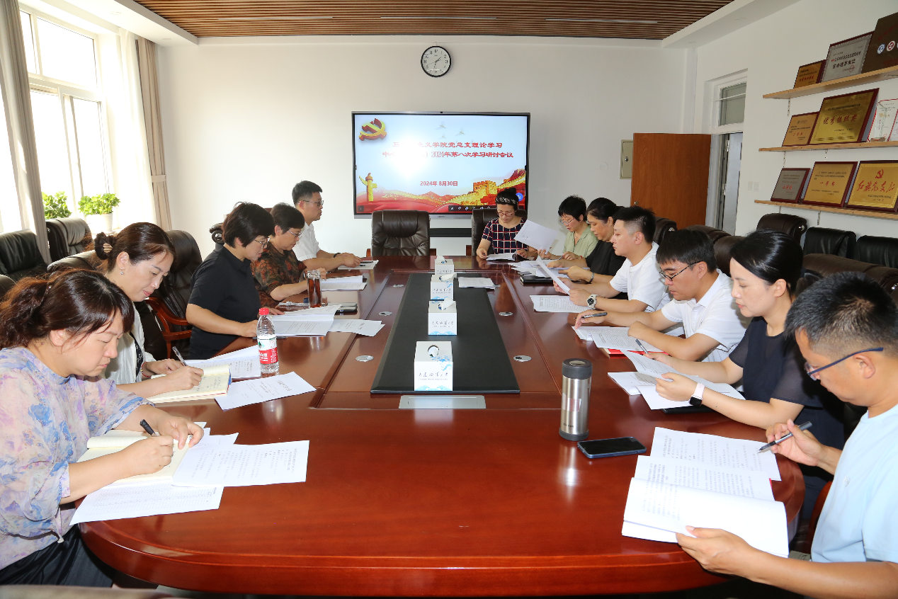 8月30日,tyc122cc太阳成集团党总支召开2024年第八次理论学习中心组(扩大)专题学习会议,学院党总支委员、党支部书记参加会议,院长兼党总支书记邱金英主持会议并讲话。