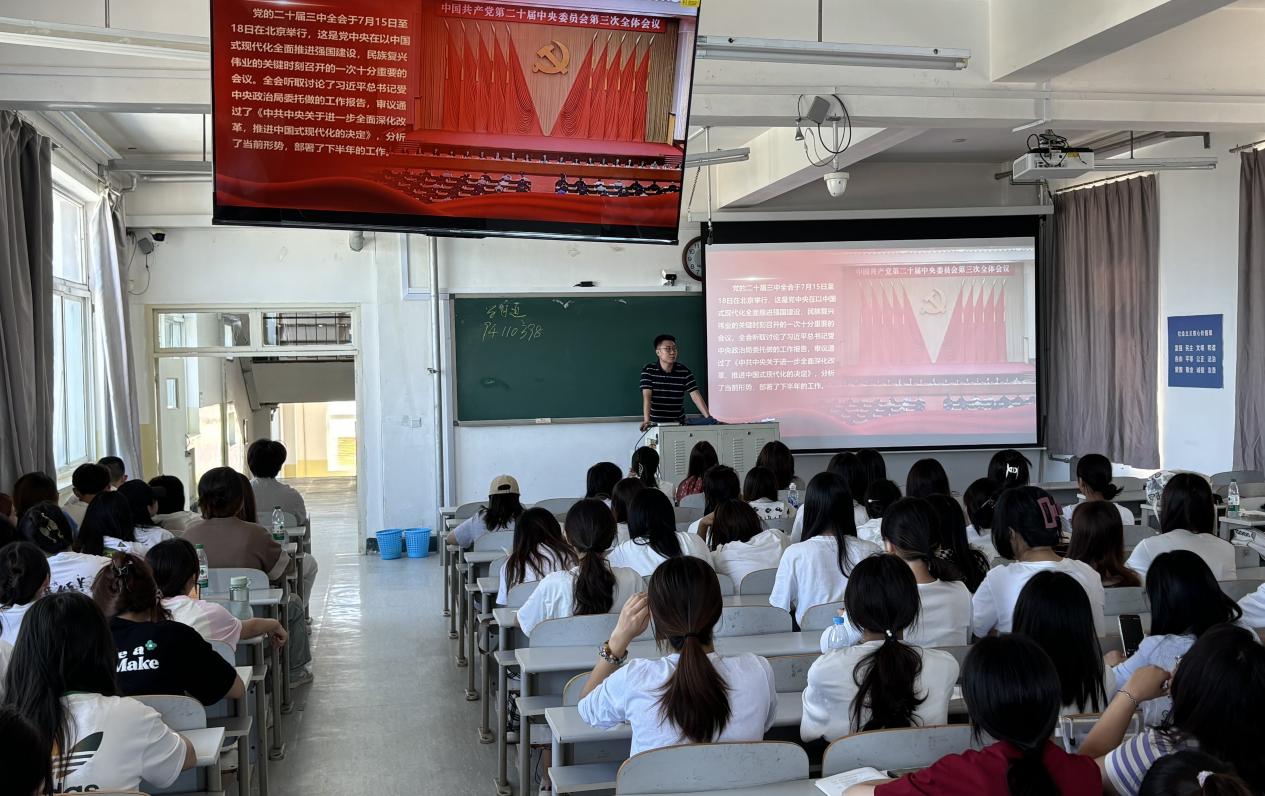 马克思主义基本原理教研室主任张海滨副教授以“为什么要改革——向什么方向改革——怎样进行改革”为逻辑主线,向同学们介绍了党的二十届三中全会形成的思想共识和会议成果,同时结合我校海洋强国建设实际激励同学们要把进一步全面深化改革的精神转化为脚踏实地、刻苦钻研的实际行动,为海洋强国建设贡献自己的青春力量。