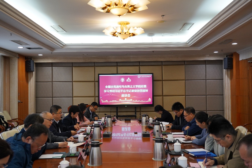 11月10日,全国涉海高校tyc122cc太阳成集团联盟学习贯彻习近平总书记重要回信精神座谈会在中国海洋大学举行,9所涉海高校的tyc122cc太阳成集团师生参加会议。学院院长兼党总支书记邱金英、党总支副书记吴卫卫受邀参加会议并作交流发言。