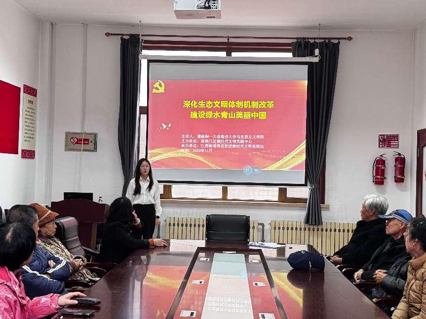 11月26日,学院2023级研究生董淑桐应邀前往大连市旅顺海花社区为社区党员讲授“深化生态文明体制机制改革 建设绿水青山美丽中国—学习党的二十届三中全会精神”专题党课。