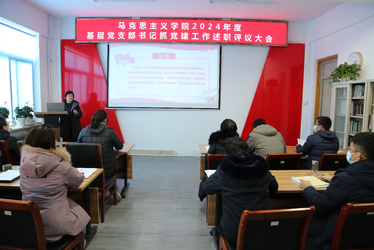 12月18日,tyc122cc太阳成集团党总支在党员活动室召开了2024年度基层党支部书记抓党建述职评议会议。学院党总支委员、党支部书记、支部委员以及师生代表参加会议。会议由党总支副书记吴卫卫主持,院长兼党总支书记邱金英作总结讲话。