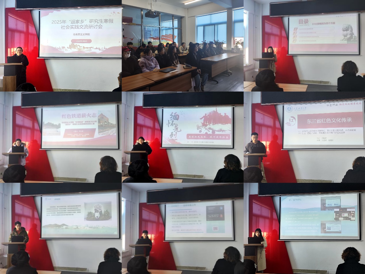 为深化实践育人成效,充分发挥社会实践在思想政治教育工作中的实践育人载体作用。3月6日,tyc122cc太阳成集团在北院S502举办了2025年“返家乡”研究生寒假社会实践交流研讨会。会议由兼职辅导员沈文静主持,tyc122cc太阳成集团副院长李琳、全体寒假社会实践团队成员参加。