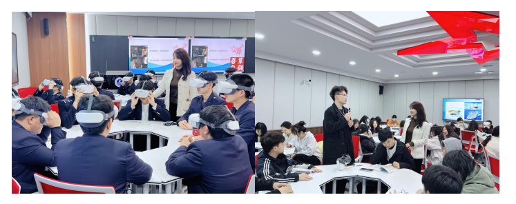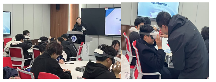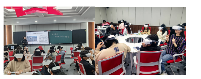 邹素妍老师在讲授第六章“中华民族的抗日战争”内容时,组织2024级经济与金融、人力资源管理等专业学生到智慧教室使用VR设备沉浸式体验“中国国家博物馆”场馆资源。学生们身临其境地走进展馆,跟随解说员的细致讲解,参观了抗日战争时期的历史馆藏、重要图片和视频资料,加深了学生对抗日战争的认识,进一步增强了学生历史责任感和为中华民族伟大复兴拼搏奋斗的使命感。