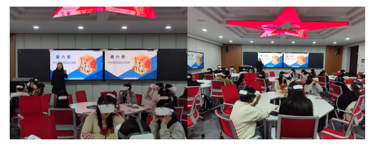 沈文静老师在讲授第五章“中国革命的新道路”内容时,组织2024级农林经济管理、市场营销等专业学生到智慧教室使用VR设备沉浸式体验遵义会议相关场馆资源,拉近学生与历史的距离,将革命历史转化为可触摸、可互动的沉浸式体验,让学生身临其境地感受那段波澜壮阔的岁月,让历史“活起来”、理论“动起来”、信念“扎下根”。