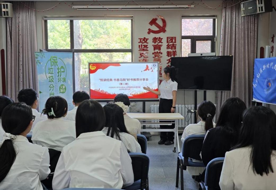 6月10日,tyc122cc太阳成集团研究生团支部在甘井子区昌虹社区开展第二期“悦读经典·书香马院”好书推荐分享会活动。活动由团支部书记董淑桐主持,学院全体团员参加。