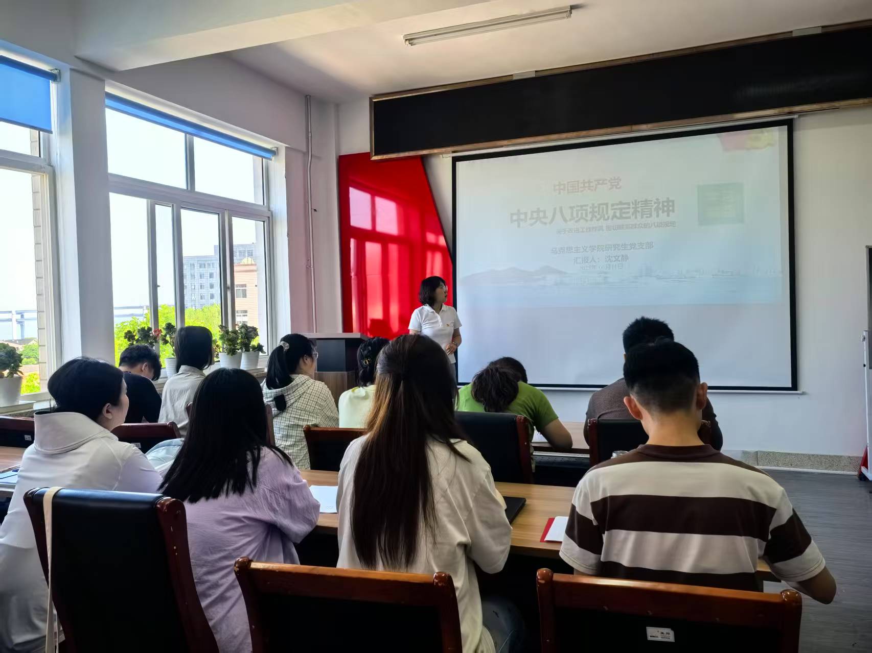 支部党员共同学习了《习近平关于加强党的作风建设论述摘编》中关于“作风问题本质上是党性问题”“作风问题核心是党同人民群众的关系问题”等专题的内容。支部党员围绕所学内容,结合自身实际,交流分享学习心得。沈文静以“深度学习解读中央八项规定精神”为题讲授专题党课。