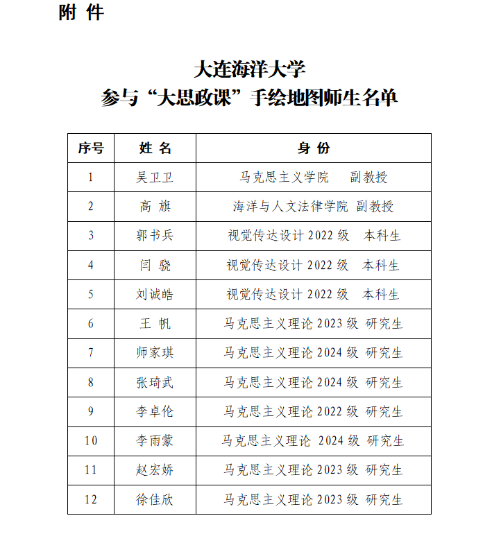 根据工作要求,我校组织吴卫卫副教授、高旗副教授带领王帆、郭书兵等10名学生围绕大连近代史、海洋元素、海洋强国战略等主题开展创作,提交作品成功入选,为《2025“大思政课”手绘地图》积极贡献力量。