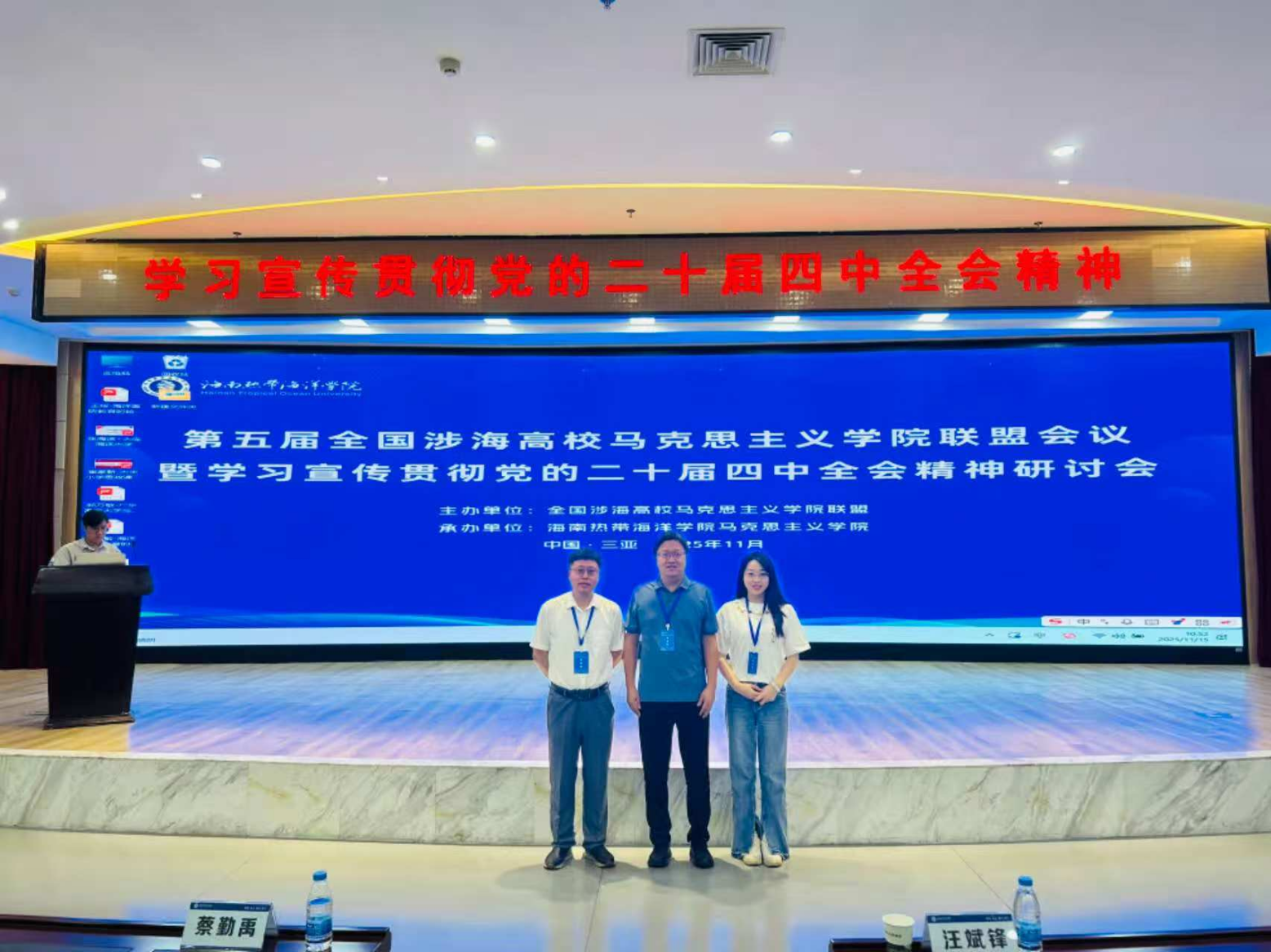 1114日至16日,第五届全国涉海高校tyc122cc太阳成集团联盟会议暨学习宣传贯彻党的二十届四中全会精神研讨会在海南热带海洋学院举行,学院党总支书记王磊、马克思主义基本原理教研室主任张海滨、习近平新时代中国特色社会主义思想概论教研室教师石丽萍参加了此次会议。