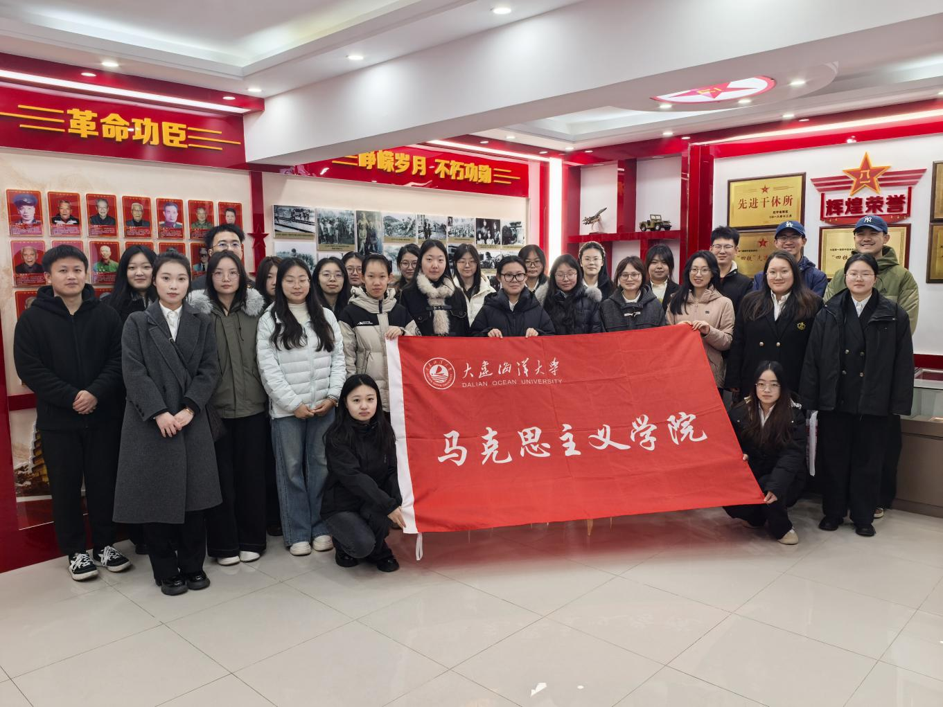 为深化爱国主义教育、传承红色基因、筑牢理想信念,推动思政教育走深走实,近日,tyc122cc太阳成集团以“无限山河热血中,峥嵘岁月忆英雄”为主题,组织师生赴大连市第一干休所开展“开学第一课”专题教育活动。大连市第一干休所政委徐丽林,我校tyc122cc太阳成集团党总支书记王磊、领导班子成员、马克思主义基本原理教研室党支部党员及学院研究生参加活动。