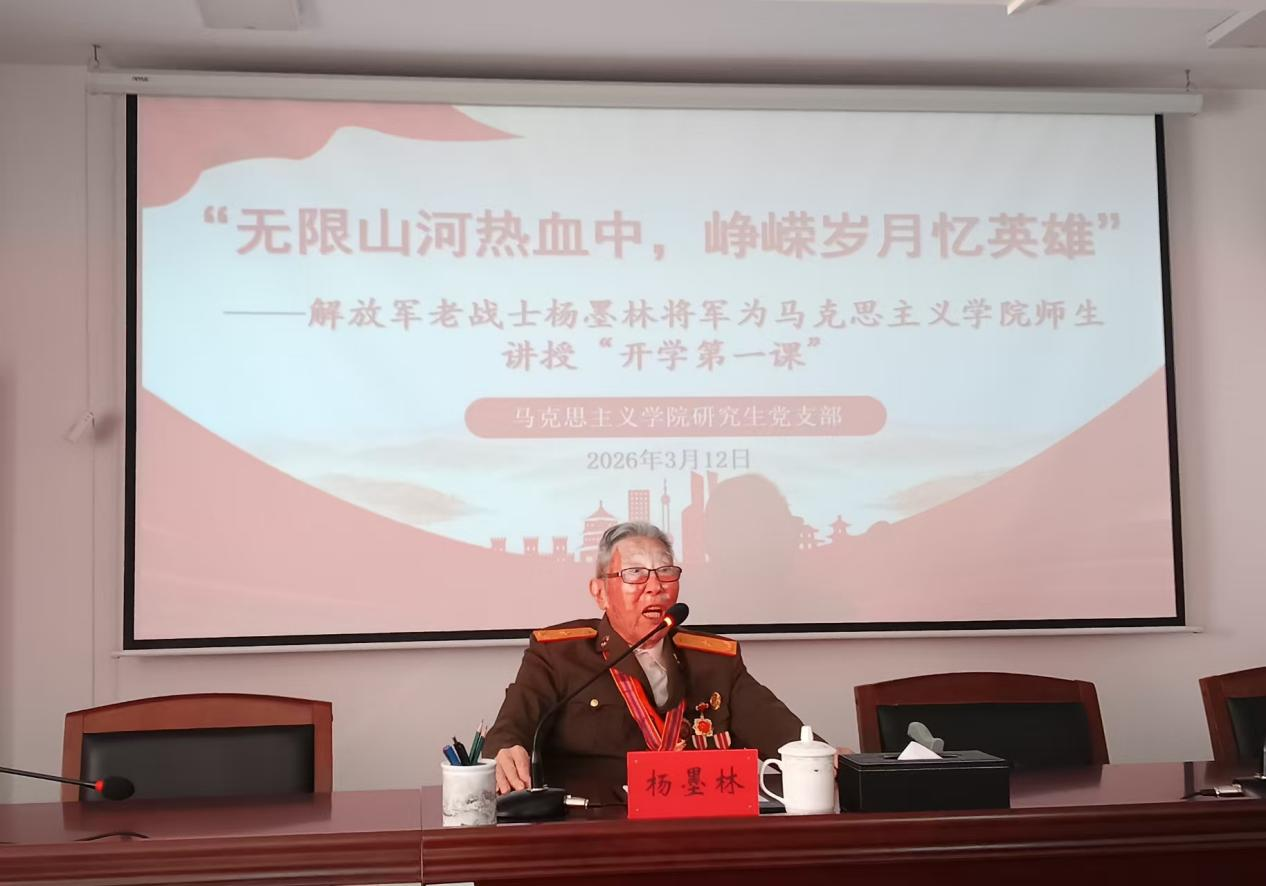 活动中,解放军老战士杨墨林将军应邀作专题报告。他深情讲述亲身经历的苦难岁月,控诉日寇残暴行径,回顾坚定从军信念,表达报效国家的执着追求,字里行间饱含着对党的无限忠诚与感恩,彰显了革命军人的赤诚担当。学生代表向杨墨林将军献花,表达崇高敬意。随后,师生共同观看两段专题视频,分别回顾杨墨林将军投身革命、忠诚报国的英雄事迹,以及老兵冉振芳追忆烽火岁月、讲述担任白求恩医生勤务员并逐步成长的蜕变历程,生动展现了他们为国家、为人民无私奉献的坚定信念。