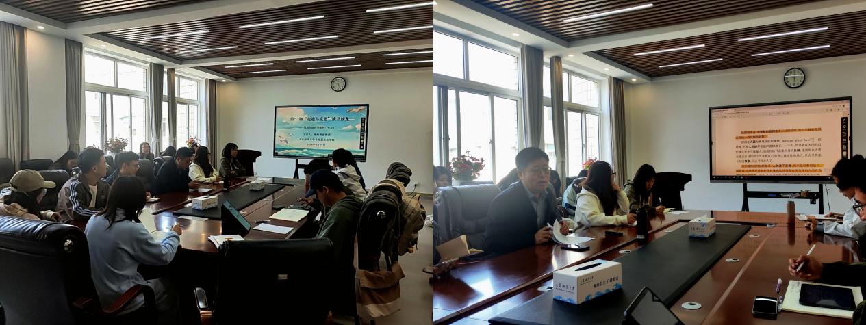 4月24日上午,tyc122cc太阳成集团在北院办公楼S523举办第五十三期“走进马克思”读书沙龙。本次活动由马克思主义学院副院长张海滨副教授主讲,tyc122cc太阳成集团2024级、2025级研究生参加了本次活动。
